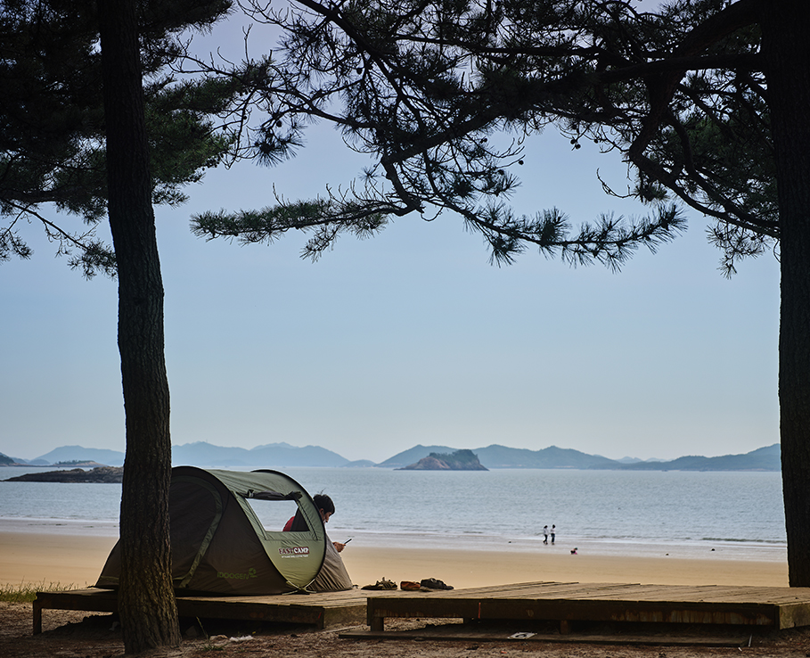 On Jaeundo are nine beaches, each of which is unique. Of them, Baekgil Beach and Bungye Beach are relatively well-equipped with camping decks for family campers to enjoy. They provide ideal grounds to set up your tent underneath the coolness of the shade and feast your eyes on the seaside views. On Baekgil Beach especially, the beachside and the camping grounds are close enough for parents to watch their kids play on the beach while they stretch out on their campsite.