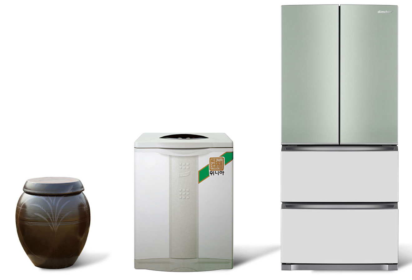 To develop the kimchi refrigerator, modernizing the wisdom of the past, when Koreans stored their kimchi in special clay crocks called kimchittok, was vital. “After measuring the temperature under the ground several hundred times to identify the principle of the kimchi crock, we discovered that the underground temperature is a constant ±1C on average,” said Sung Kyoweon, the product planning manager of WiniaDimchae, the company that first popularized the kimchi refrigerator. “To maintain this temperature, we adopted the direct cooling method, which is different from the regular refrigerator’s cooling method using wind. It was a method of cooling the storage itself. Hereby, the kimchi refrigerator, a digital jangdokdae (the space where the clay crocks were traditionally kept) which can preserve the kimchi’s flavor, was born.”