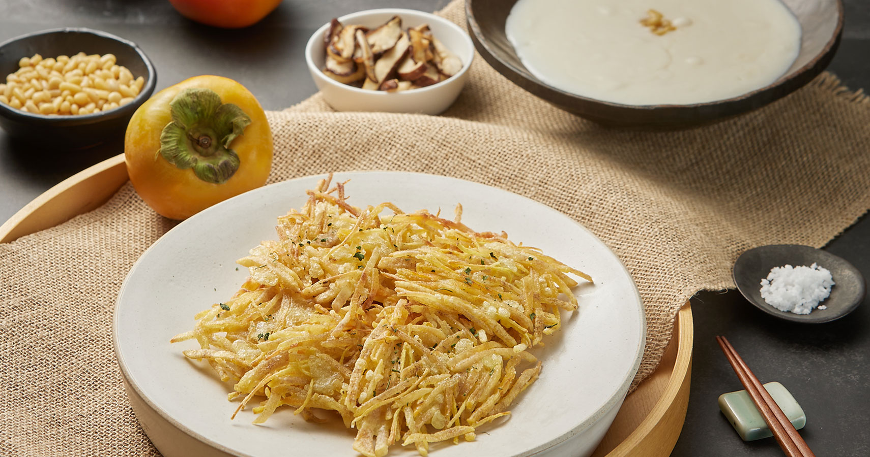 Jatjuk or rice porridge with pine nuts may seem like an unlikely pairing with dangamjeon or savory persimmon pancakes. These dishes, however, feature signature fall staples that pack a nutritional knockout punch. That may be why Koreans over the centuries have loved these autumn flavors in both savory and sweet dishes.