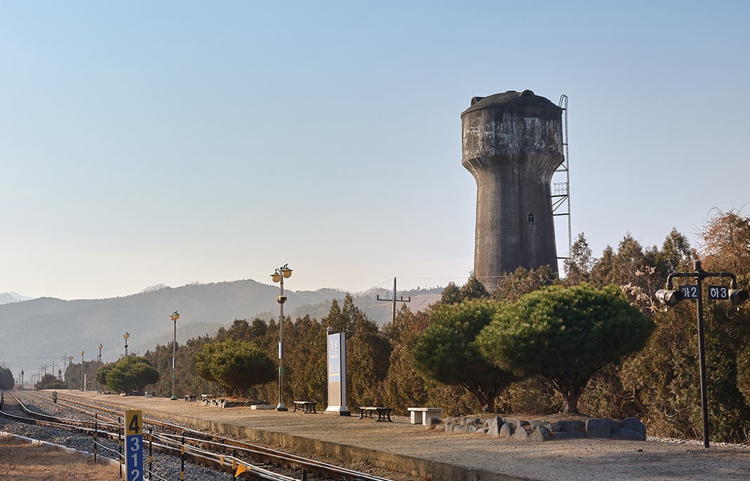 Hwabon Station’s restoration uses not only the main station building, but also several related spaces. The water tower, boasting a history of more than 100 years, has been brought back to life as a historical site and a photo zone. This water tower supplied water to steam locomotives from 1899 to 1967 and is now a landmark of Hwabon Station after its remodeling. The 25-meter-tall water tower is also a space where you can feel the passage of time. Inside there are phrases inscribed by workers in the old days, including admonitions to save coal.