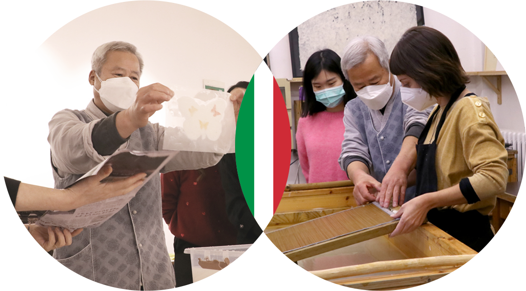 A demonstration and workshop of hanji (Korean paper) production were held on Dec. 13, 2021 at the Paper Lab of the Academy of Fine Art of Rome. The demonstration and workshop were held privately by Jang Eung-yeol, a hanji artisan from Gangwon-do, for about 40 students.