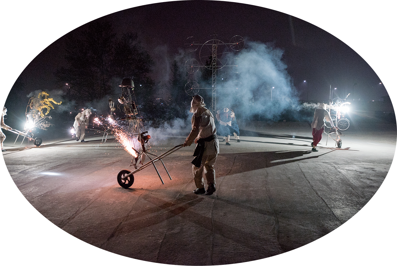 Street artists perform in a space with remains of the former intake station. © Creative Group NONI