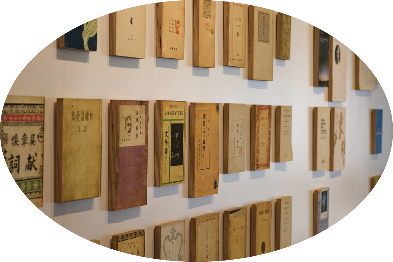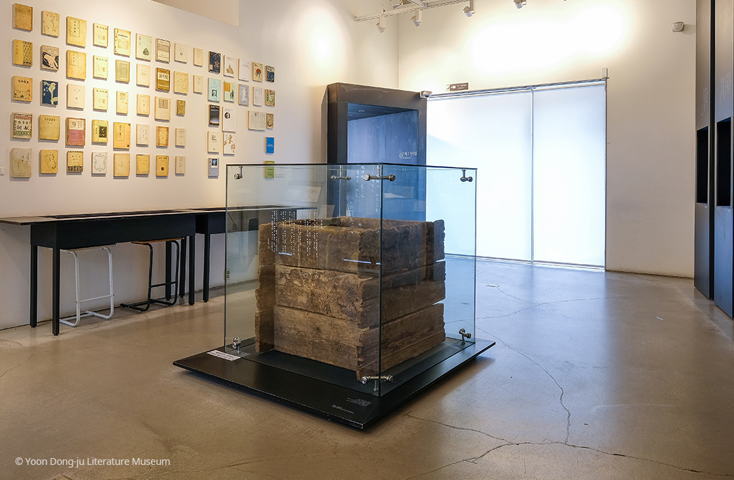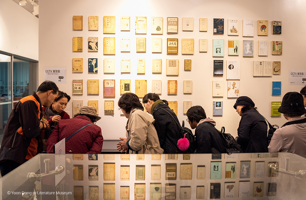 The covers of Yoon Dong-ju’s books are on display along the wall.