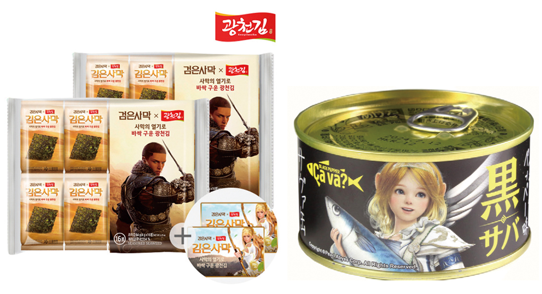 Games have recently been blurring the boundaries between the real world and the virtual world through collaborations. A typical example is the medieval-style MMORPG (Massively Multiplayer Online Role-Playing Game) Black Desert, a game that has gained attention for its novel collaborations. The move has started to expand contact points with players and has led to collaborations with various domestic (Korean) and foreign brands for products such as gum, gim (dried seaweed), shampoo, underwear and canned mackerel.