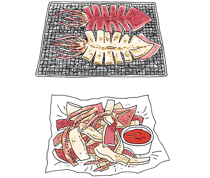 Koreans love squid, especially its chewy texture. Squid can be enjoyed in a variety of ways such as boiled or raw, but there’s nothing like maekbanseok ojingeo-gui sold at a highway rest area.