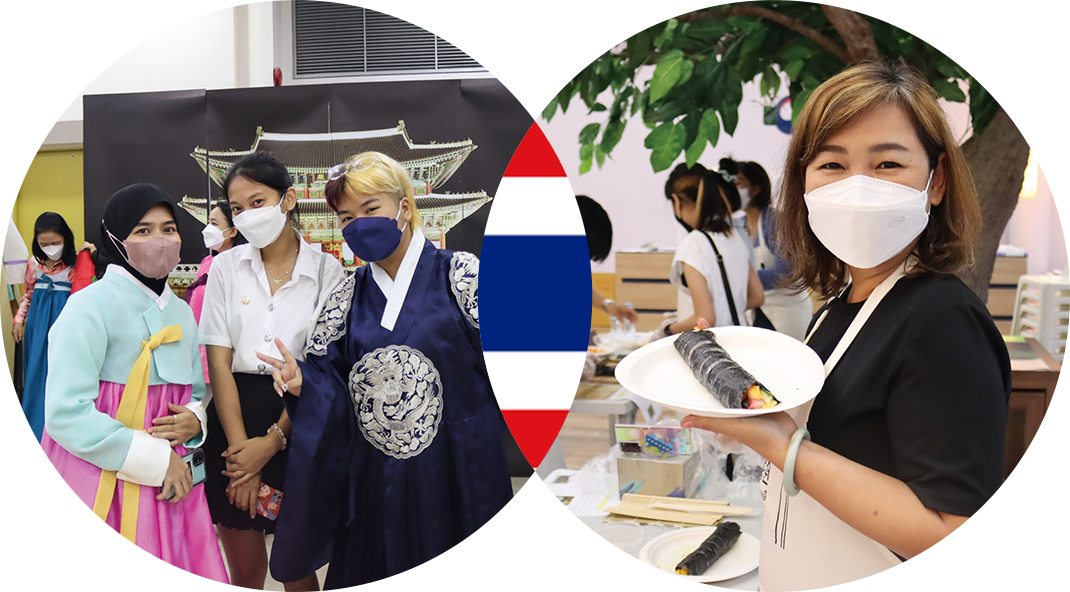Students experienced “Woo Young-woo gimbap” and “Dong Geurami gimbap” from the K-drama, “Extraordinary Attorney Woo,” which has recently become a hit in Thailand. Through the guidance of a lecturer, students were able to make gimbap with prepared ingredients, and they had a blast tasting their creations.
