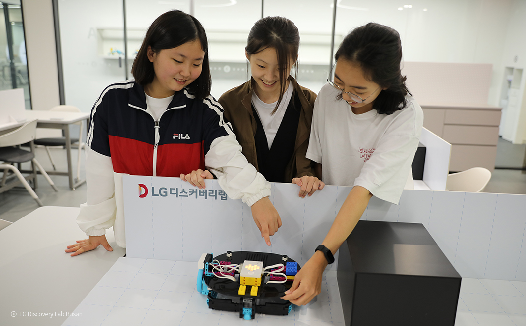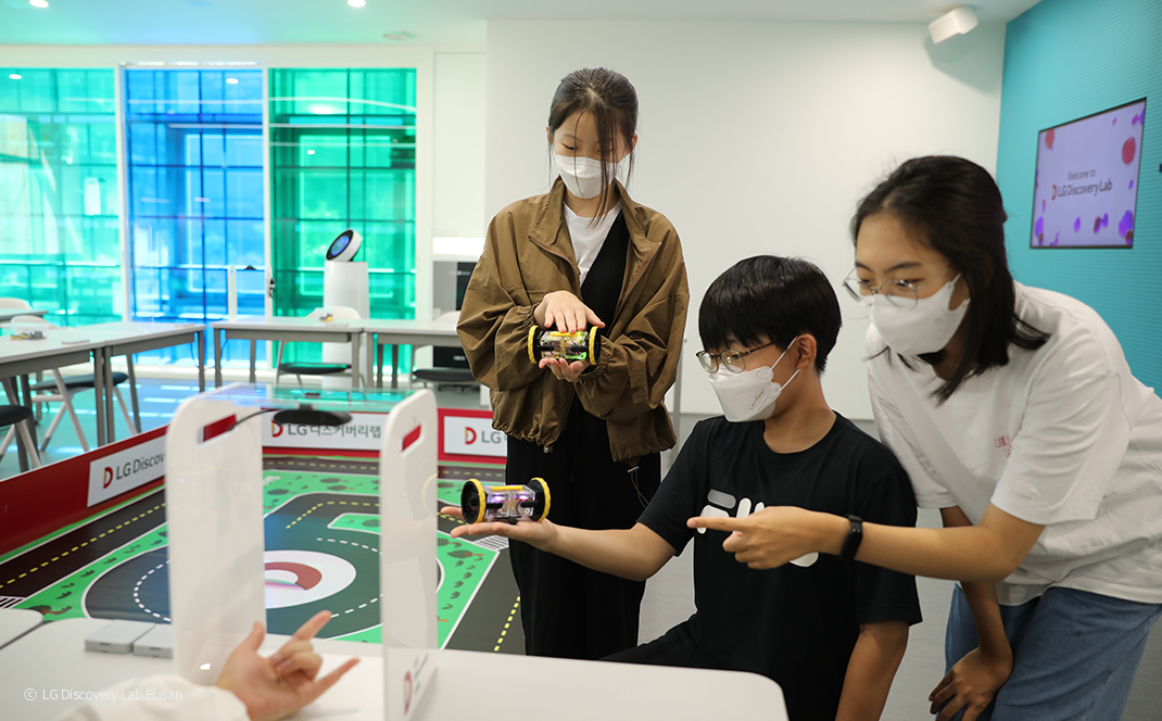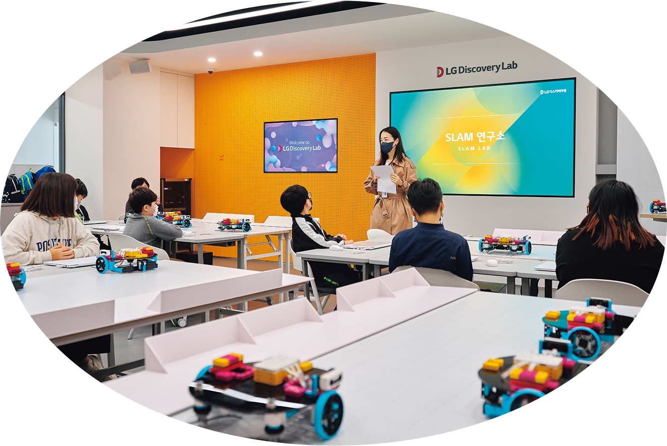 The LG Discovery Lab Busan, renovated at the request of Busan Metropolitan City and the citizens of Busan, dreams of a future created together with local residents. The educational programs offered by the LG Discovery Lab Busan are developed in collaboration with researchers and research organizations of LG affiliates who are directly involved in the respective fields.