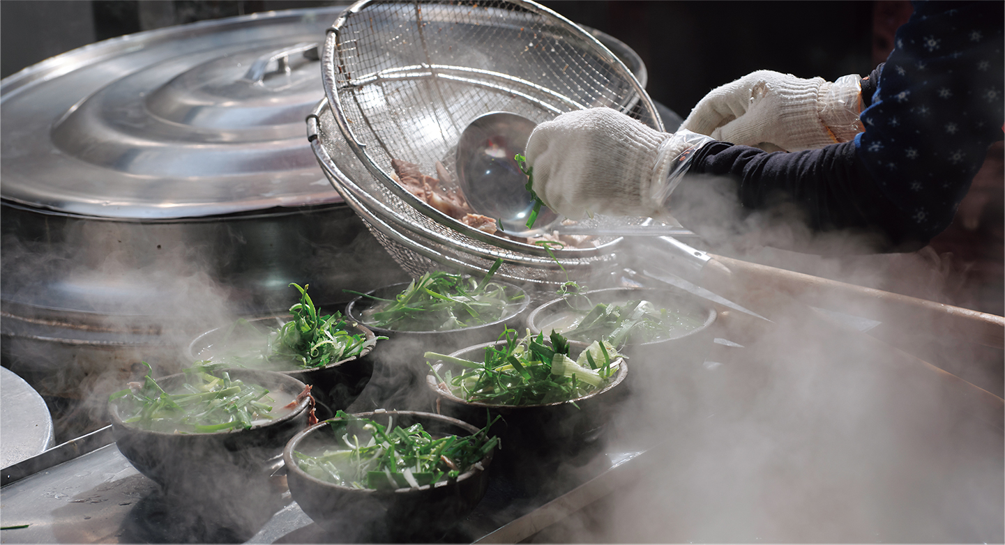 “Dangmyeon (glass noodles)” introduced during the Korean War became a staple food for refugees. This is because of the chewy texture and the fact that they do not get mushy even after boiling. Refugees liked it because they could fill up on just a small amount of the noodles.