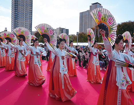 The pre-event performance on Nov. 5 centered on students from both Korea and Japan and created a venue for cultural exchange. It included performances of wadaiko (traditional Japanese drums) and the wind ensemble from Osaka International Takii High School.