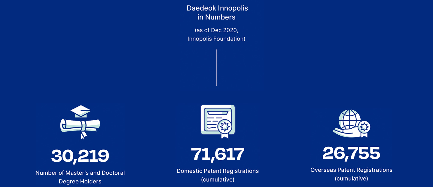 Moreover, after its merger with Daedeok Techno Valley, Daedeok Innopolis has turned into a major incubator for cultivating advanced technologies. The complex has created a cycle in which the new technologies created by research institutes can then be commercialized by companies.