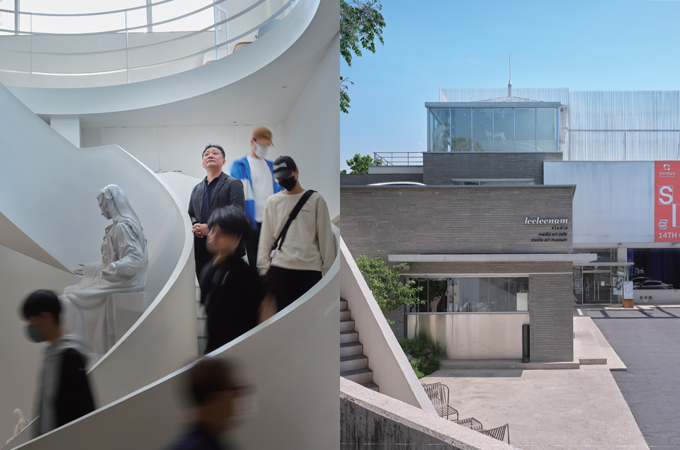 True to Lee’s belief that “art should always be accessible to everyone,” Leeleenam Studio exudes artistic flair. Each floor features screens showcasing mesmerizing media art, with new works regularly introduced. Furthermore, Lee’s sculptures are artfully placed throughout the space, with the centerpiece being the “Reborn Light-Pieta” on the first floor, serving as a harmonious backdrop for the circular staircase. On the rooftop, the piece “Venus of Light” seamlessly integrates with the city’s skyline, creating a captivating and unconventional vista. In just three years since its inception, Leeleenam Studio has emerged as a prominent artistic attraction in Gwangju.