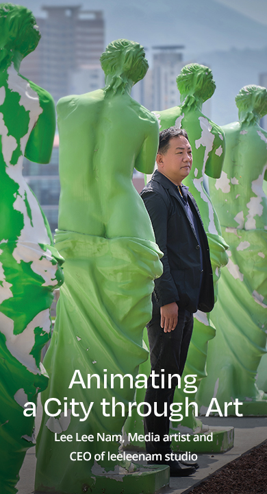 Renowned media artist Lee Lee Nam gained international recognition for his innovative adaptation of classic flat paintings into captivating videos. Snow delicately descends upon Kim Hong-do’s “Mukjukdo (ink Bamboo),” while flowers bloom on Johannes Vermeer’s “The Girl with a Pearl Earring.” Lee’s ambition now lies in infusing the spirit of art throughout Gwangju. By breathing life into countless paintings, he aspires to animate the entire city with art.