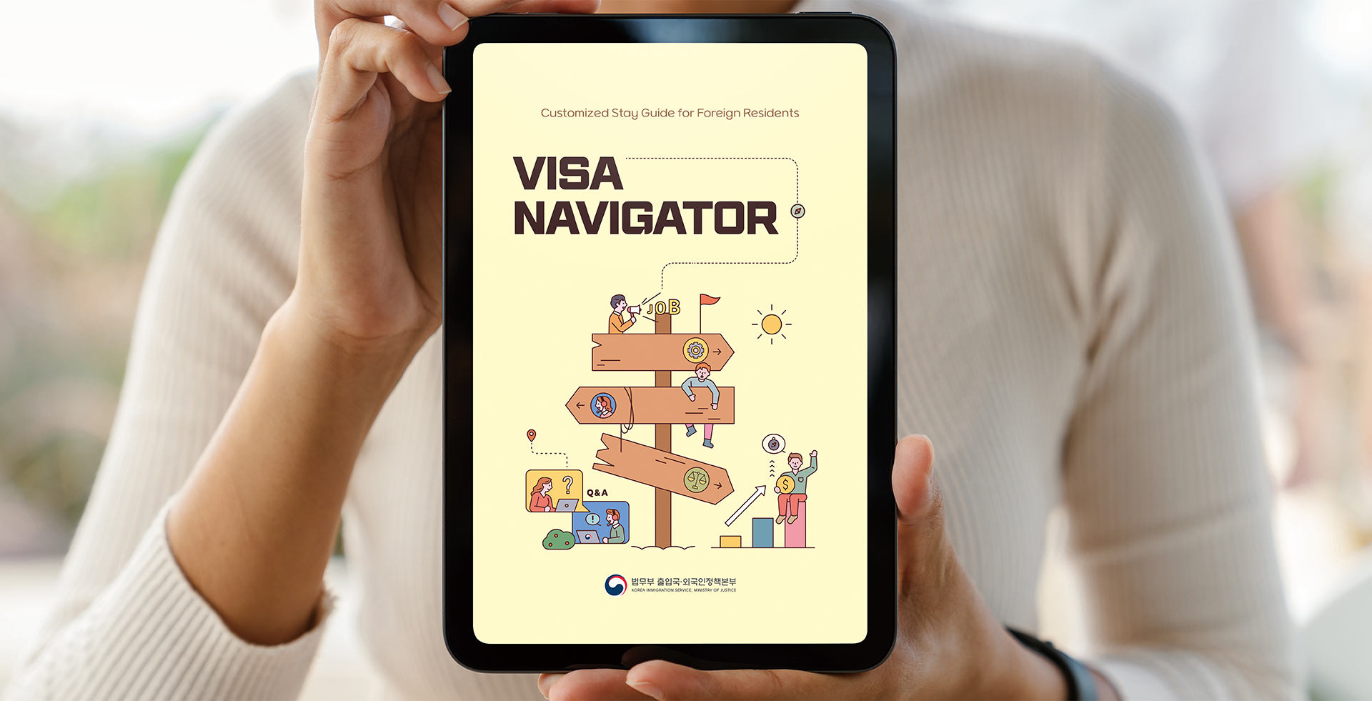 Visa Navigator contains information on 37 types of visas, jobs open to expats, process of obtaining permanent residence after entering the country, filing a civil complaint, frequently asked questions, common counseling cases and reporting rules to be followed.