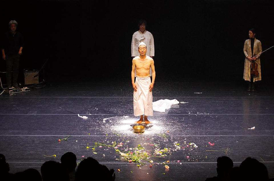 During his more than 50 years, he has staged countless mime performances. In particular, the most notable works, “Empty Hands” and “Red Room,” were created through adversities he faced in life. “In 1996, I was diagnosed with a brain tumor. I let go of everything and retreated to the mountains. While letting go of my greed and obsession and resting comfortably, miraculously, the brain tumor disappeared. Even the doctors called it a miracle. It was then I realized that ‘illness comes from the mind, the mind can destroy the body.’ ‘Empty Hands.’” We become free when we let go of attachments with empty hands. His brush with death offered new directions for his work. Explorations of the unseen soul and spirit began to emerge as themes. “Empty Hands” is rooted in Korean ceremonial rituals and shamanism. Its most significant characteristic is showcasing the essence and soul of humans through the use of objects such as sacred swords, Hanji (Korean traditional paper), incense and freshly drawn water.