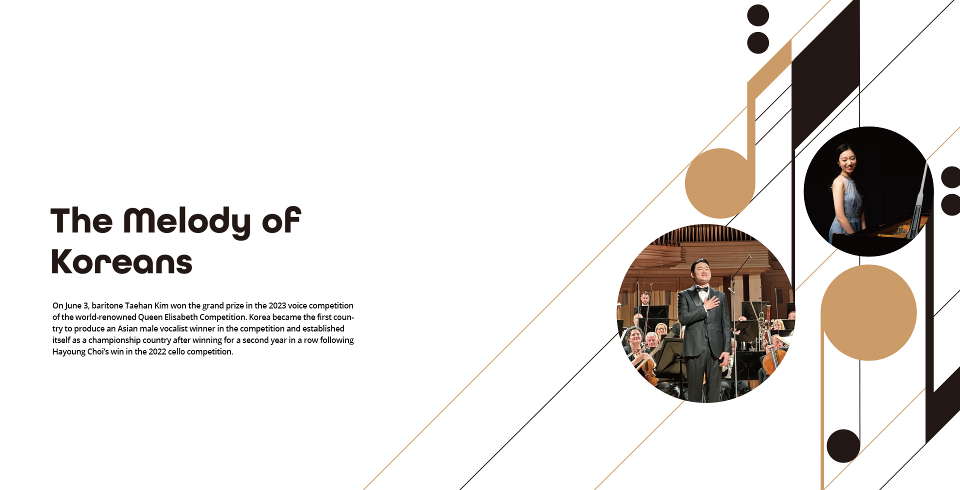 During the 2023 competition, 18 out of the 64 finalists were Korean singers. Among them, Taehan Kim, Kyungmin Kwon and Inho Jeong made it to the finals, with Taehan Kim winning the grand prize and Inho Jeong placing fifth. One of the judges, soprano Sumi Jo, said, “I am proud of the exceptional, well-prepared Korean singers.”