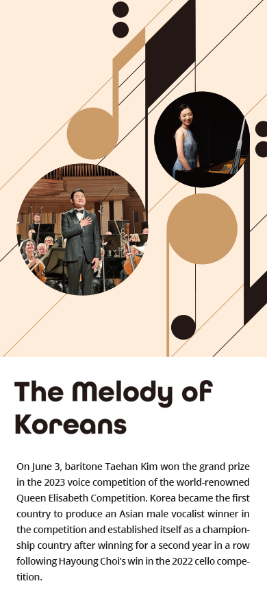 The potential of Korean musicians has been highlighted on the global stage once again at this year’s Queen Elisabeth Competition. The Queen Elisabeth Competition is held every year in the order of violin, piano, cello and voice, and Korean performers have stood out in each competition. A large number of Koreans advanced to the finals in piano in 2021, in cello in 2022 and in voice in 2023. Previous Korean winners include Haeran Hong (vocal, 2011), Sumi Hwang (vocal, 2014), Jiyoung Lim (violin, 2015) and Hayoung Choi (cello, 2022).