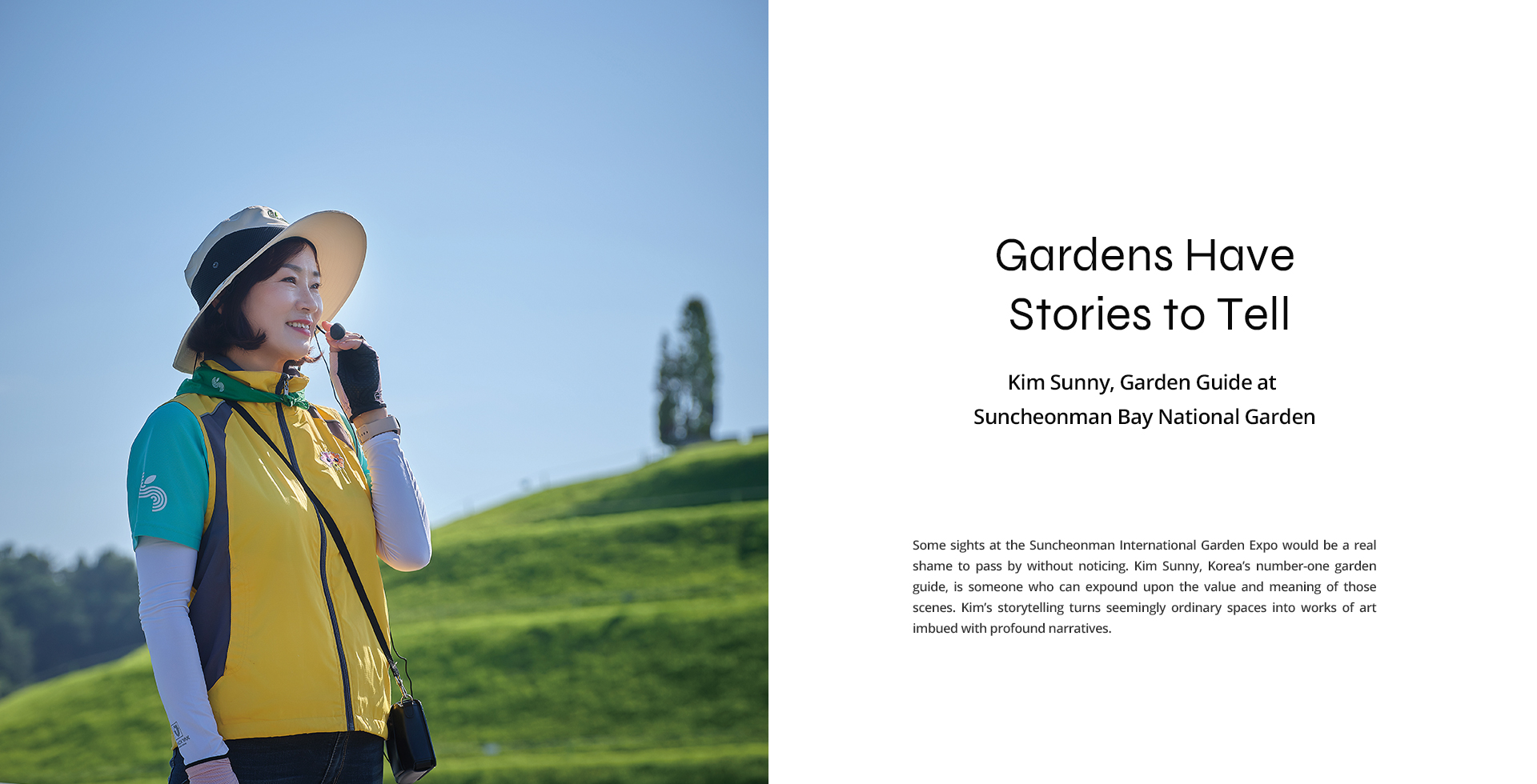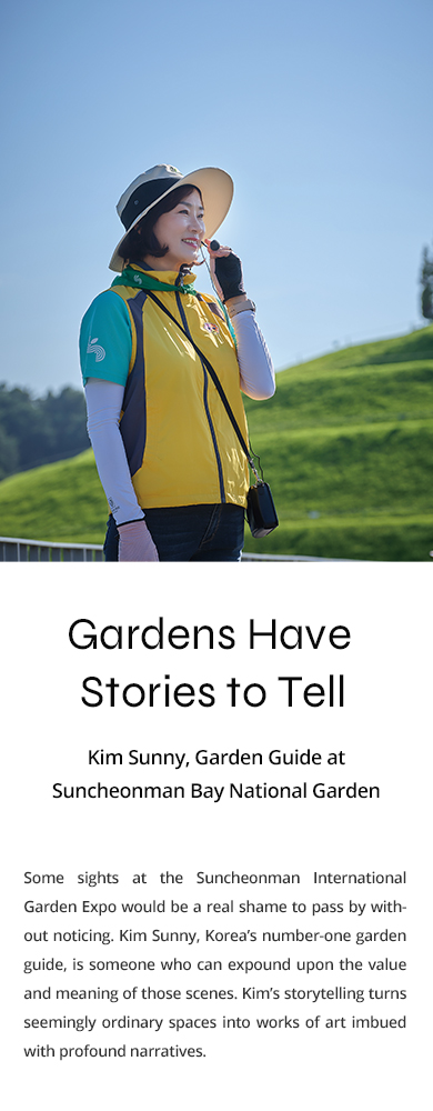 Ten years later, Kim is now recognized as one of the top garden guides at both the Expo and Suncheonman Bay National Garden, where the expo is held and where she continues to guide visitors even after the conclusion of the Expo. Her commentary goes beyond basic explanations, incorporating captivating information. Since a garden reflects the culture of a region, she describes the garden’s various cultural elements, including its architecture and horticulture. And, adapting to all visitors, she tailors her descriptions accordingly.