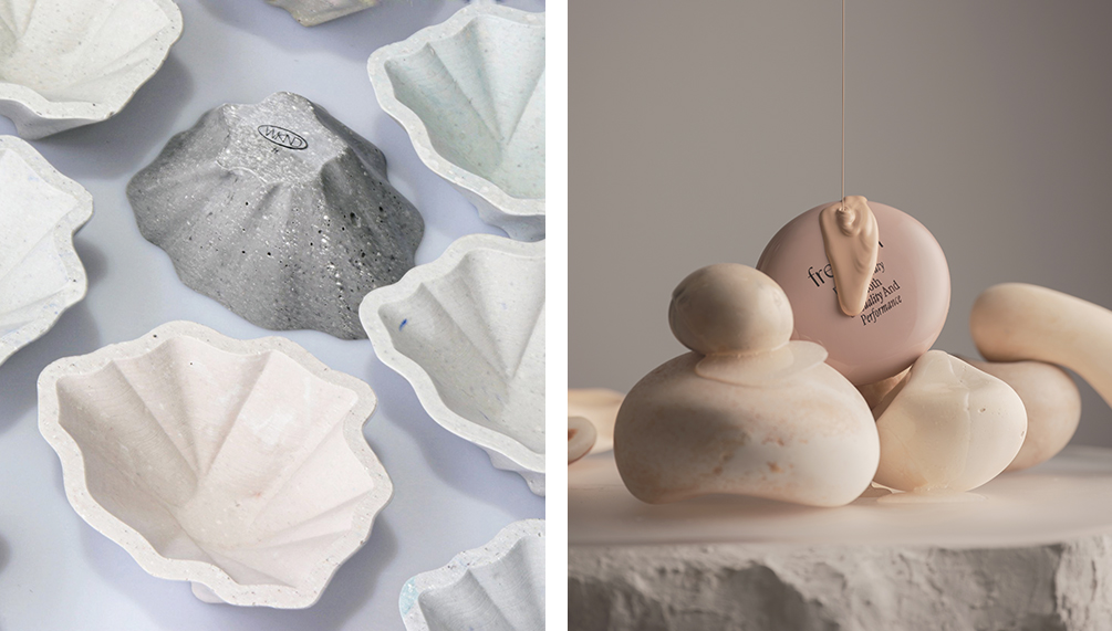 (Left) Tray of Oygg series. Oygg series is made using eggshells discarded from an ice cream shop and shells from Tongyeong, Korea.A good designer for WKND Lab is a person who is able to propose a situation after a product has been cast aside. That’s why the company continues to question the world and plans on expanding their art-related activities to achieve a more sustainable tomorrow.