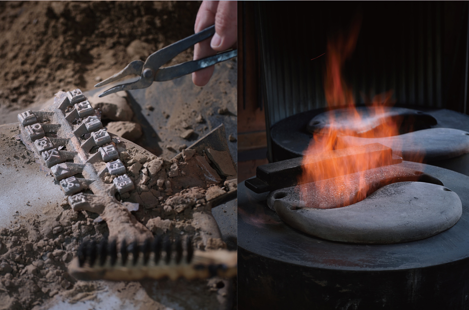 Traditional methods are adhered to in every stage of the process: engraving the characters, melting the metal to make the type, filing down the type when it cools, and setting the type.
