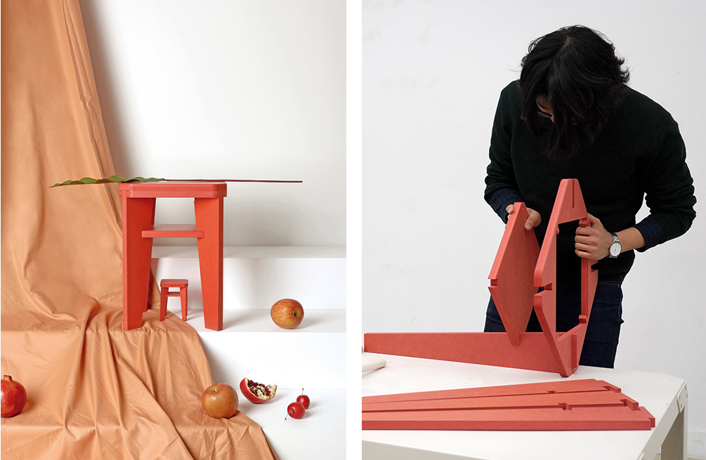 His senior project naturally took a turn towards eco-friendliness as well. Back then, he presented an eco-friendly lighting project as his senior project, and that was when he became aware of abandoned furniture. Due to components like adhesives, nails, and fasteners making disassembly difficult, many wooden pieces of furniture couldn’t be recycled and were being discarded. It was then that he embarked on a quest to find a solution.
