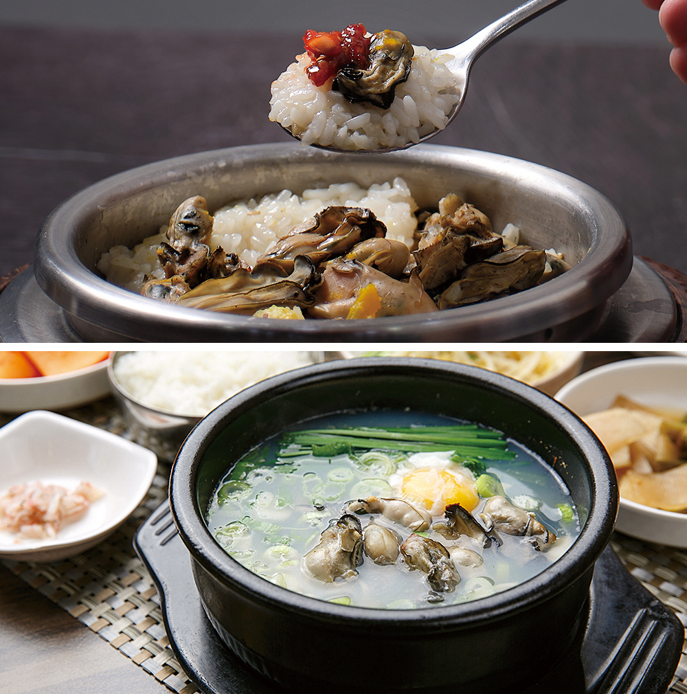 (Bottom) Gulgukbap has a more harmonious flavor when seasoned with saeujeot (salted shrimp).