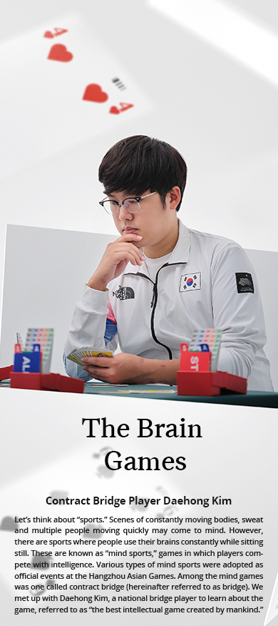 I want to promote bridge to a much broader audience. Bridge is most often played by older Koreans, and the player base is very small. So, I will continue to educate various age groups. And, one day, I want to win third or higher in World Bridge Championships. I want to become a player who can hang out with the world.