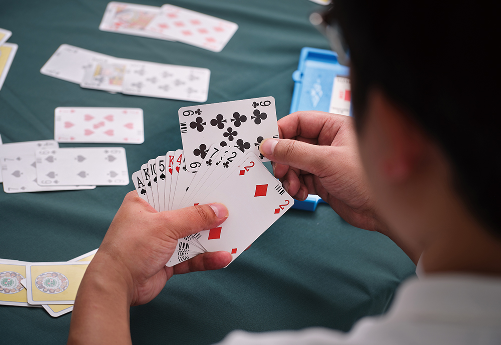 Bridge is a card game in which two teams of two participate. First, you sit across from your partner at a square table. The teams are called North-South and East-West. The 52 trump cards (minus the joker) are divided into sets of 13. Bridge uses letter cards (A, K, Q, J) and number cards (10 to 2). A is the strongest while 2 is the weakest. The game starts with a “trick” in which each player puts out one card. The person who plays the most powerful card wins the trick. The player who won the trick places the cards in front of them vertically while the players that lost places the cards horizontally. You win the game if your team has more vertical cards than the opposing team. The entire process takes place without any words or gestures.