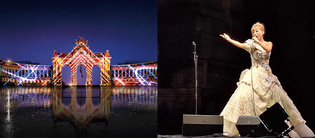 There, installation artist Ligyung unveiled her latest work, “Embrace of Lights.” Employing projection mapping, a cutting-edge technology that projects vibrant light images onto object surfaces, her installation featured the Korean and EU flags along with cultural and historical symbols to produce a dazzling display of colors.