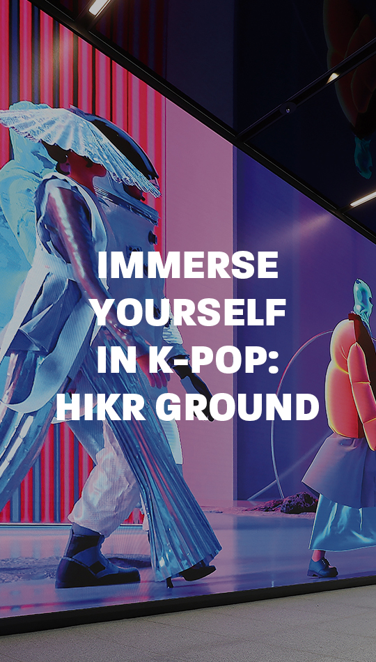 HiKR GROUND, located in central Seoul’s tourist-friendly Jongro area, allows you to experience K-pop with all your senses. A massive media wall is the first thing you’ll see upon entering the entrance to HiKR GROUND. The media wall features media art connected to the exhibitions occasionally held here. The grand exhibition takes up the entire massive screen, covering a whole floor of HiKR GROUND. There’s a glass wall in front of the media wall that allows you to see it from the outside, so you can check out the wall when you pass by if you’re curious about the exhibition’s theme on display at the HiKR GROUND.