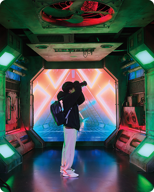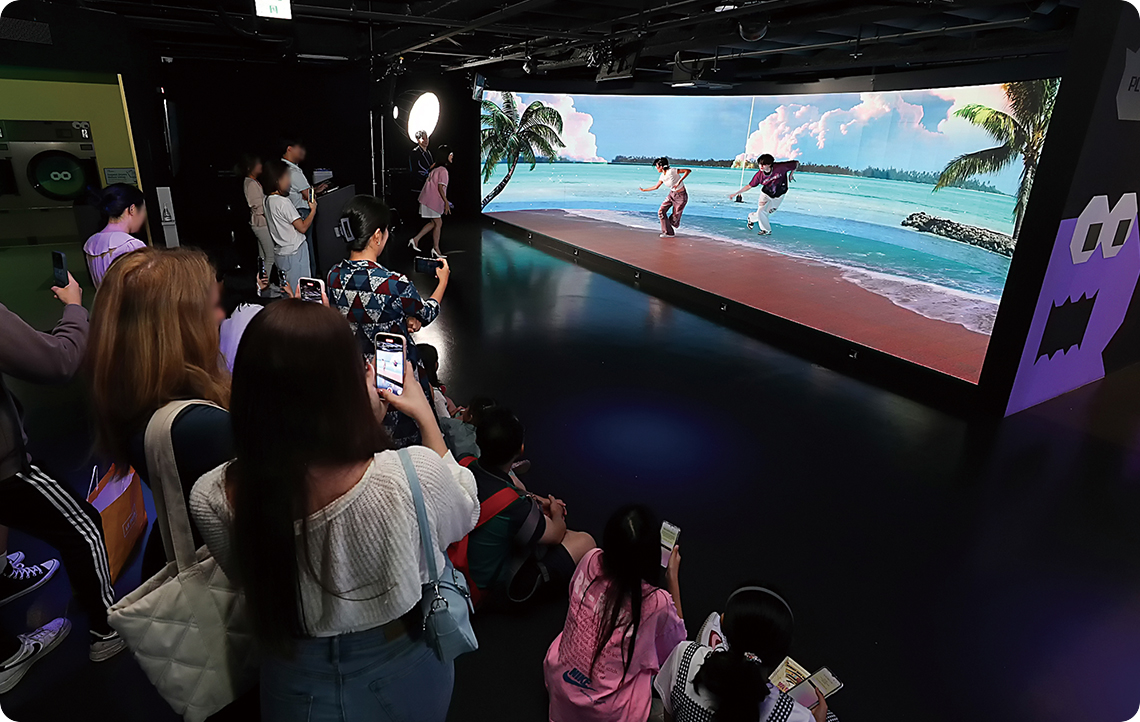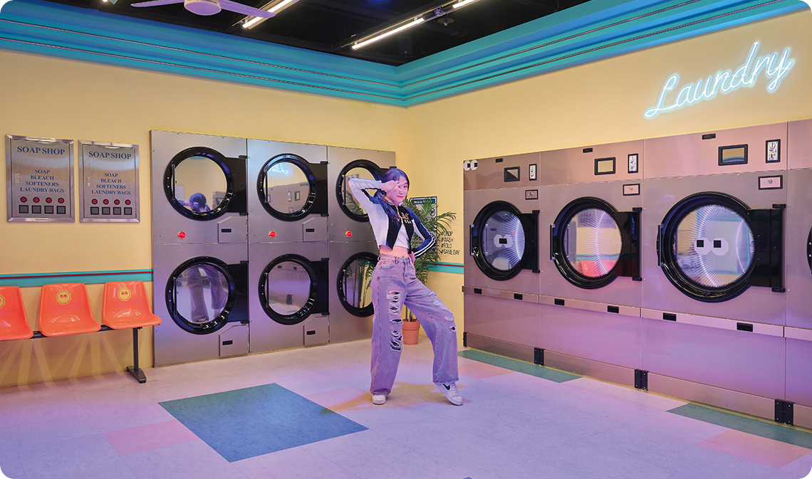 Once you’ve had your fill of trying on all that gear, it’s time to become the star of a K-pop video. HiKR GROUND’s stages all allow you to set their lighting in different ways, and you can even choose your own music. If you don’t know where to start, it’s probably best to try out the “Subway” stage first. The stage looks exactly like the inside of a subway car, allowing you to change the scenery outside the subway car’s windows as you wish. The “Spaceship” stage has similar features. Using the screen and fluorescent lighting, you can try a popular dance challenge with a background that makes it look like you’re swimming through space. If you want something more charming and less showy (and without the in-your-face virtual screen and lighting), the Laundry Room might be for you. The space is a pastel-colored laundry room that could have come from a comic book. No matter which one you choose, all these stages allow you and your friends or family to have a blast taking photos with scenes from K-pop videos in the background.