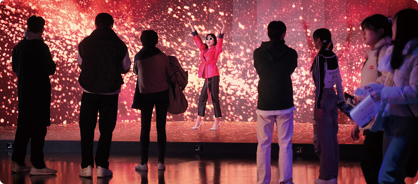 After heading up the steps connected to the media wall on the first floor, you’ll step into the world of K-pop. But before jumping onto the brilliantly lit stage, it’s best to look around the display set up in one corner of HiKR GROUND. There, you can try on various K-pop gear, such as sunglasses, gloves and hats for free.