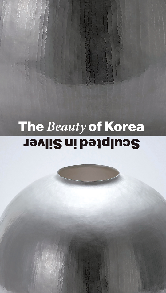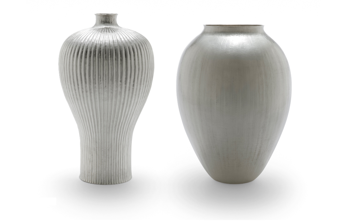 Firstly, in my previous works, the form of the work and the decorative lines on the surface harmonized and balanced each other. This is more easily understood when you look at signature pieces like a pot, a maebyeong vase, or a moon jar. In the latest award-winning works, I produced them in a more open shape than before. I maximized the size attainable from a single sheet of silver. At the same time, I focused on creating lines that flow on the surface in various patterns.