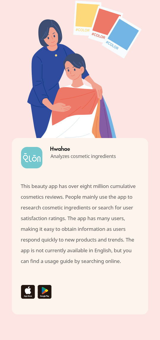 Let’s take a brief look at the K-beauty analysis culture. First of all, Koreans tend to analyze cosmetic product ingredients before purchasing them. Koreans refer to YouTube videos that analyze the ingredients used in a product line and choose the product that best suits their skin, even if they’re looking to buy some lotion. Apps that analyze the ingredients and functions of cosmetic products are also actively used, making it easy to see if a product contains ingredients you like or don’t like. These analysis tools can help you prevent skin problems and allow you to enjoy the full effects of the product.