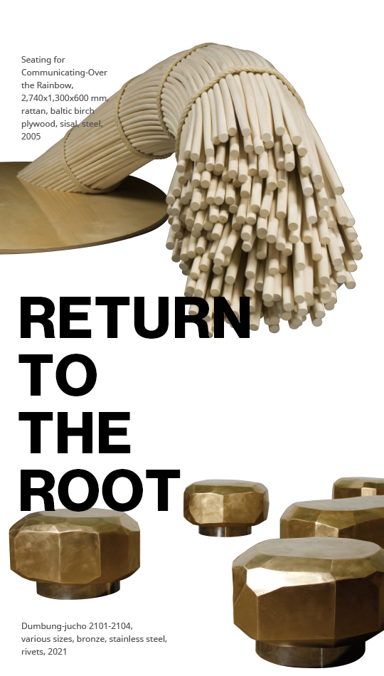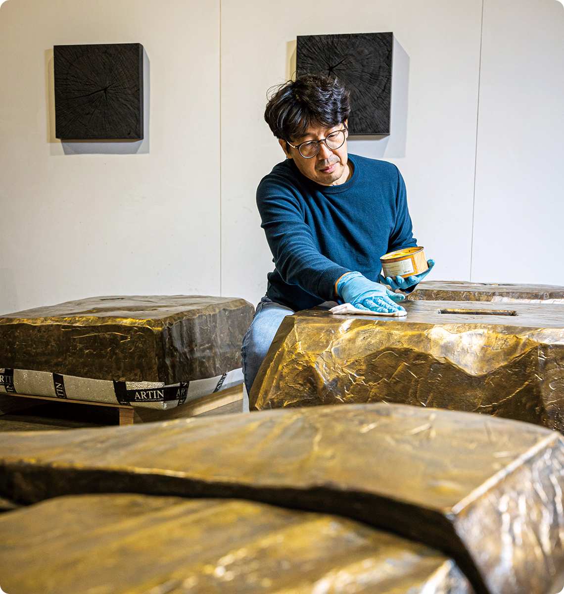 What I’m trying to do is to create works that encapsulate my identity. Before I could do that, it was necessary to understand my cultural background and research Koreans’ unique identity. So, I explored ancient ruins and relics in search of my background. The roots I found there—Korean ethos and values—were then subsumed into my work. More specifically, ancient Korean architecture reflects a “naturalistic spirit” that sought to use unprocessed natural materials, avoid overstated forms of expression and achieve harmony with nature. My work’s three basic themes are identical to ancient Korean architecture’s characteristics.