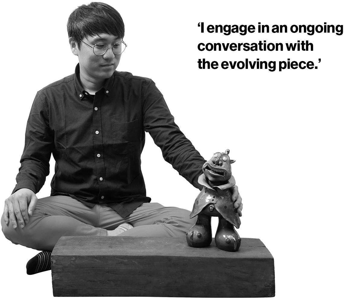 One of my signature series is the “Haechi (Haetae)” series―inspired by folklore. Haechi―a mythical creature―can distinguish between good and evil, protecting people and buildings from disasters like fire. In our world today, we still face man-made calamities such as disasters, conflicts, and hatred. While it remains uncertain whether Haechi truly had an effect, I believe we should create our own versions of Haechi to prevent the misfortunes we bring upon ourselves.