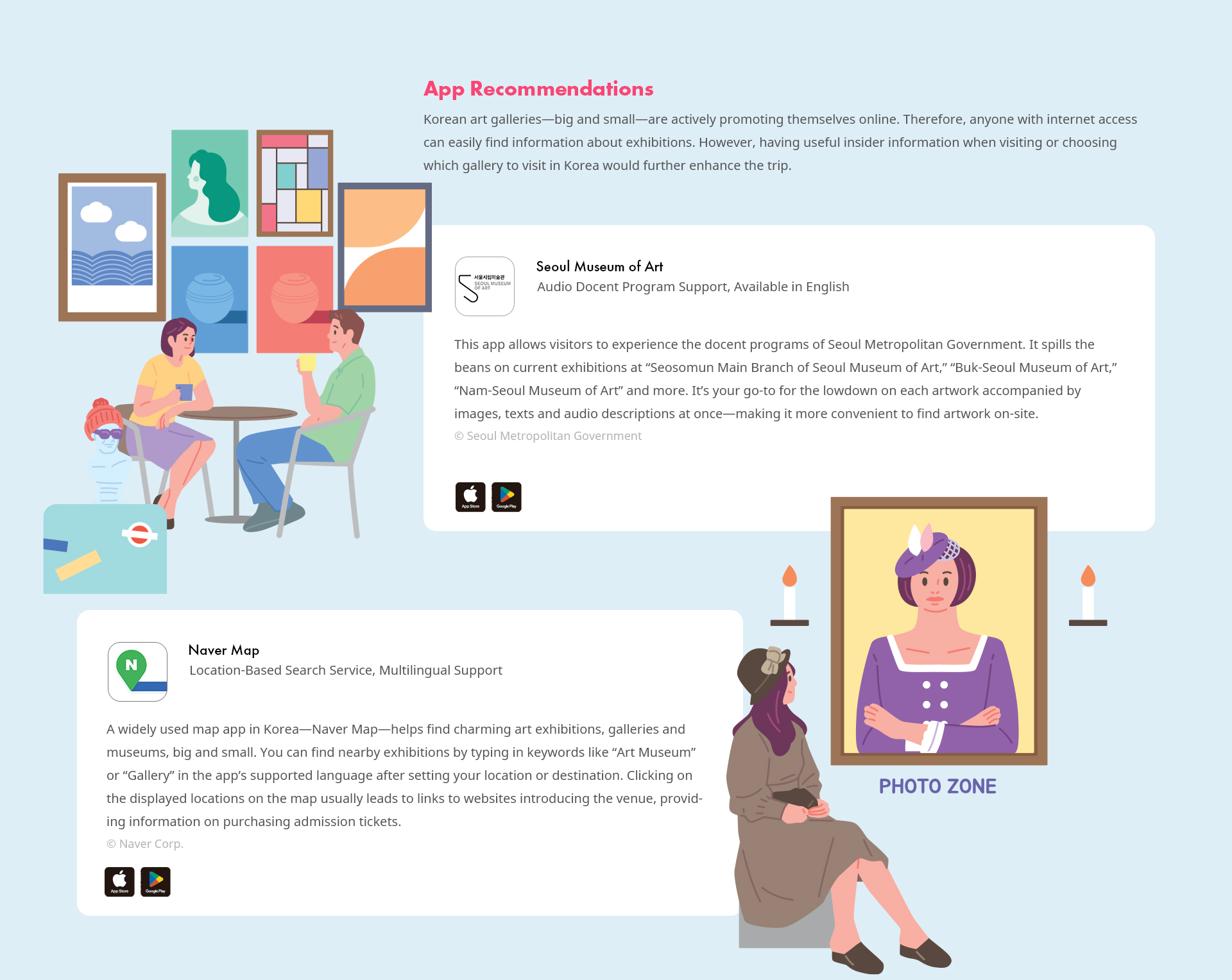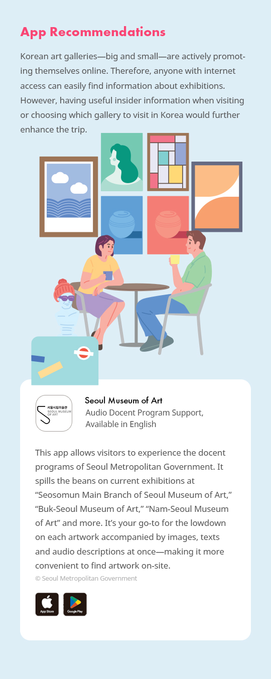 They also visit galleries to get a bang for their buck. While some special exhibitions may cost upwards of KRW 12,000 (USD 8.8)―rivaling the price of a movie ticket―most are priced below KRW 10,000 (USD 7.3). Permanent exhibitions and commercial galleries are generally free of charge. Plus, with post-COVID cost hikes for activities like going to the movies, art galleries offer an affordable way to spend quality time soaking up culture and artwork.