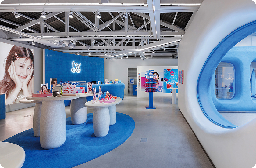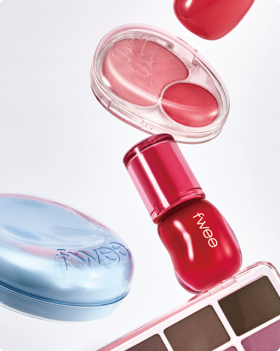 The new brand color, bright blue, conveys a feeling of freshness to consumers and stands out as it is not commonly used by beauty brands. The container design was based on an atypical circular shape, evoking an organic form shaped by its grip rather than adopting a specific motif. This made it instantly recognizable as a Fwee product, even without the brand’s logo on top.