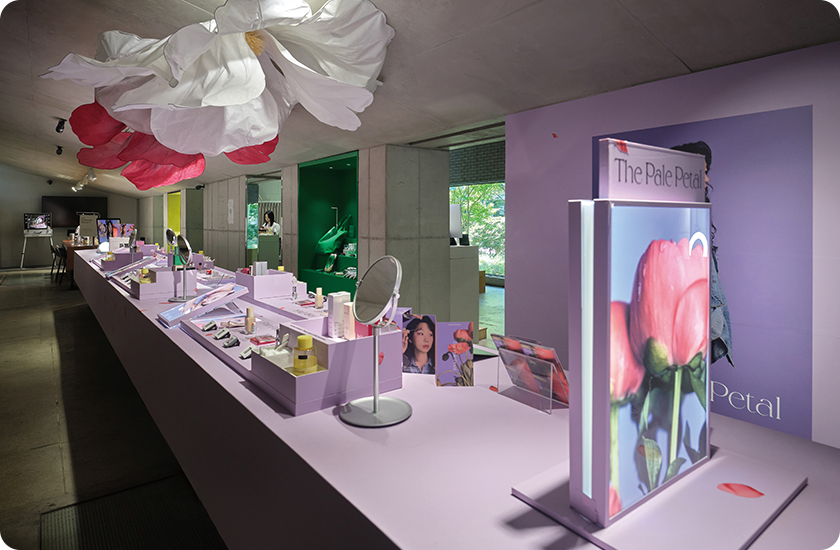 With so many products on display, it can be daunting to know where to begin. Anyone in that position is recommended to drop by the Artist with its Makeup & Life Blending display, featuring seasonal and trendy looks recommended by professional artists. This display features products from a range of brands while recommending makeup techniques tailored to the latest beauty trends. Setting aside the products, the photographs and videos displayed alongside them and the displays themselves all look like miniature art exhibits, and simply browsing around the space is a delight.