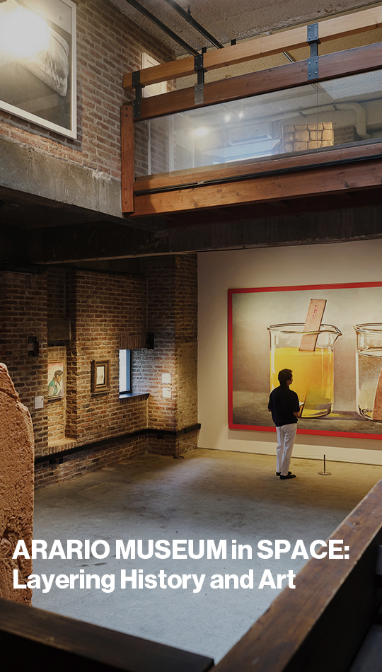 New artwork awaits visitors in the basement, the site of special exhibitions held periodically. The current special exhibition is called “Eclipse,” an evocative collection of massive paintings spanning the walls and sculptures portraying figures from folk tales and mythology. The space was previously used as a small theater that hosted experimental works of drama. Consequently, the various installations can be seen from above, as if from the audience seating, or from below, as if from the stage. The exhibition even extends into a small space that formerly served as the green room. Browsing the space feels like taking a tour of contemporary art.