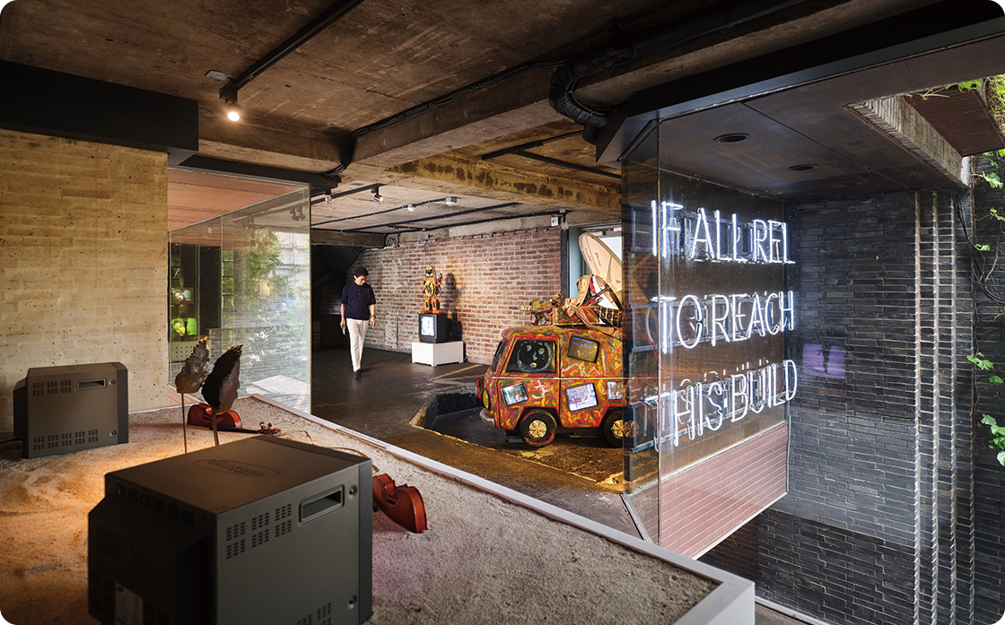 The various works of art combine with the space to create synergy. For example, a life-size model of an automobile by the artist Gwon Osang occupies a narrow space with a low ceiling, which enhances the piece’s visual weight. One of Nam June Paik’s distinctively artificial pieces is placed in front of a window, creating a charming contrast with the natural vista outside. In the same way, the sculptures of Marc Quinn are placed under powerful pin lights in a dark basement space to highlight the contrast. That setup plays up the mood of the artwork and encourages viewers to take a closer look at the details of the artwork. Another enjoyable viewing experience is provided by Li Qing, who treated a room in the museum as a building of its own and built his own house inside it.