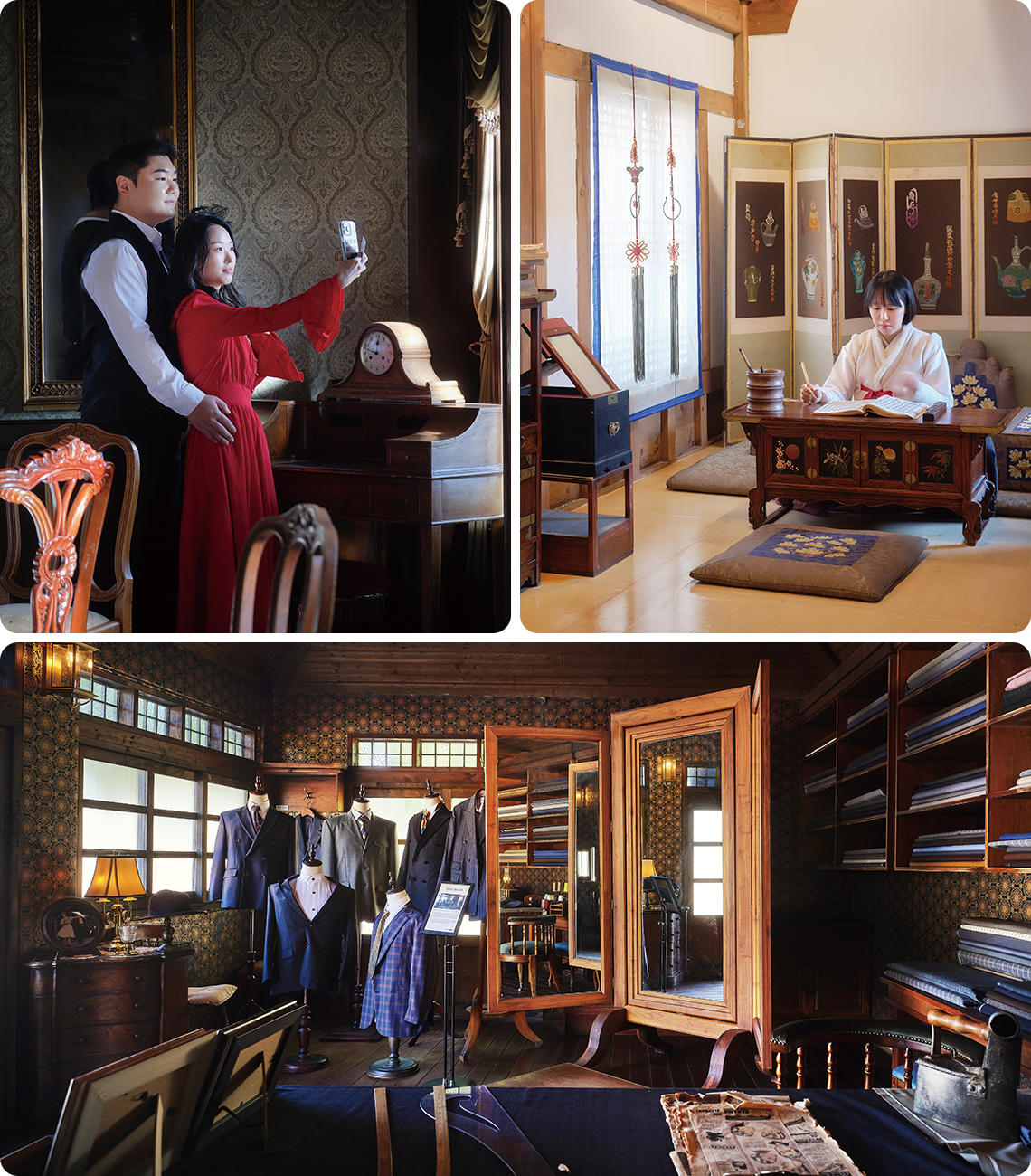 To the left of Glory Hotel, where Hanseong’s alleys begin, stands a two-story Japanese-style house. The ground floor houses a pub, while the second floor recreates a character’s residence from “Mr. Sunshine.” Though its atmosphere differs markedly from that of the Glory Hotel, exploring the space reveals familiar scenes from the drama, aided by meticulously curated costumes and props throughout both locations.