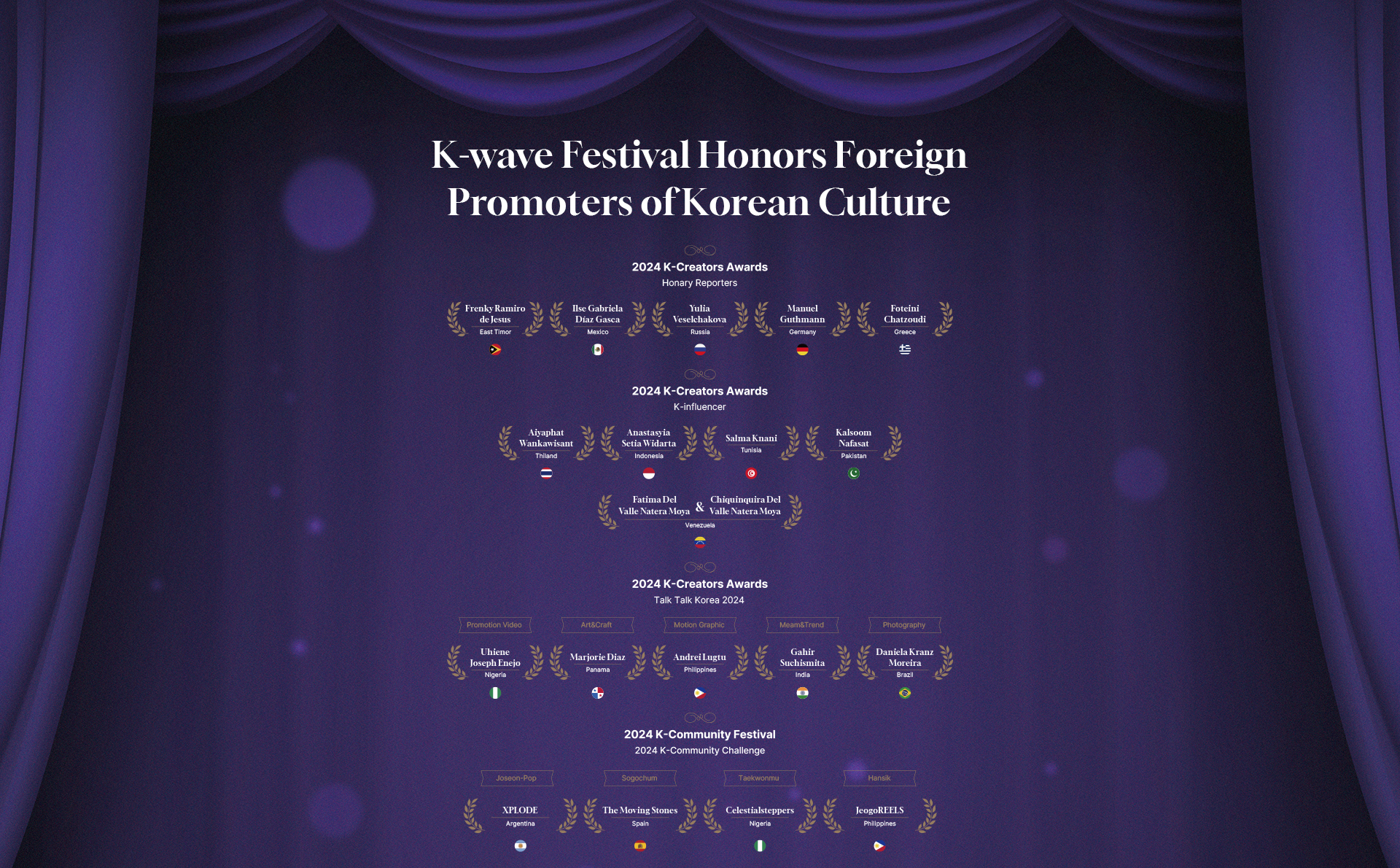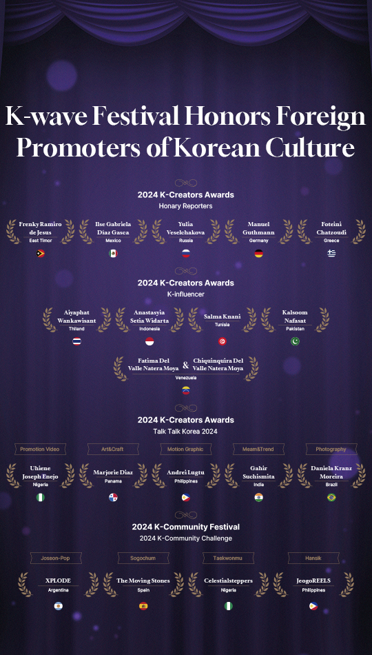 The first part honored five Honorary Reporters who globally promote Korean culture through articles and five K-influencer teams (six individuals) who do so through videos.