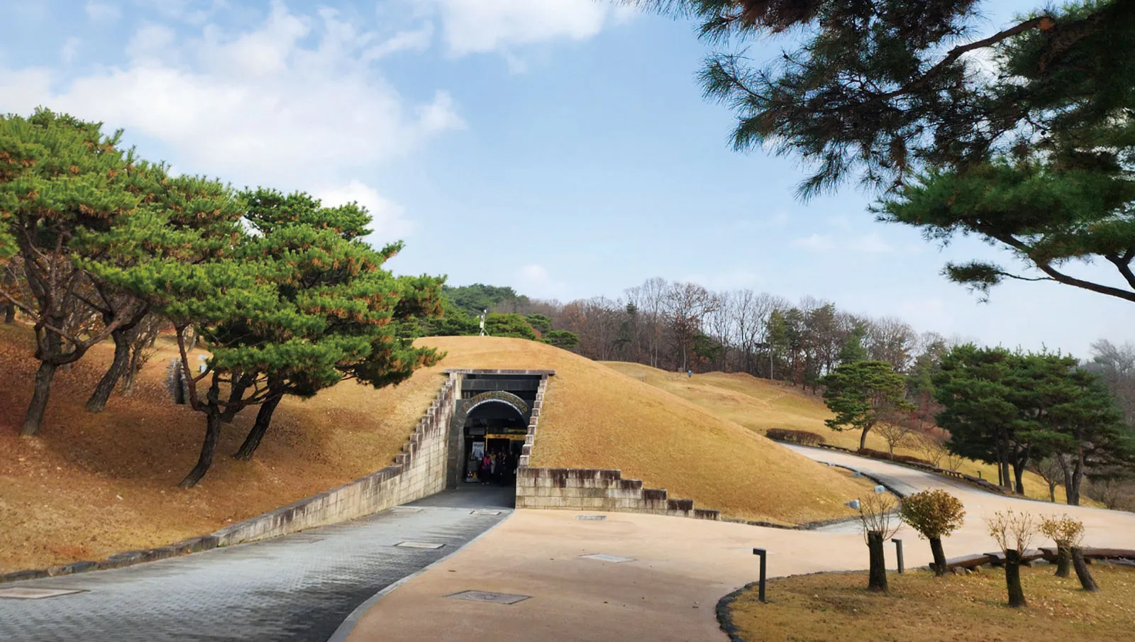 Seeking more memories of the Baekje era that Gongju preserves, the next stop is the Tomb of King Muryeong, part of the same heritage district. The gently rising burial mound sits bathed in generous winter sunlight, as if sleeping peacefully. Stepping inside reveals a large chamber, its walls completely covered in thin, flat stones. Though the space is empty, it immediately commands awe. The day this site—discovered during drainage construction—was confirmed as the tomb of King Muryeong and his queen, the monarchs who led Baekje’s renaissance, marked a watershed moment in Korean archaeology. The excavation of some 2,906 artifacts provided invaluable insights: written records revealed Baekje’s foreign relations, while the ornate jewelry of the king and queen illuminated the kingdom’s cultural and artistic achievements.