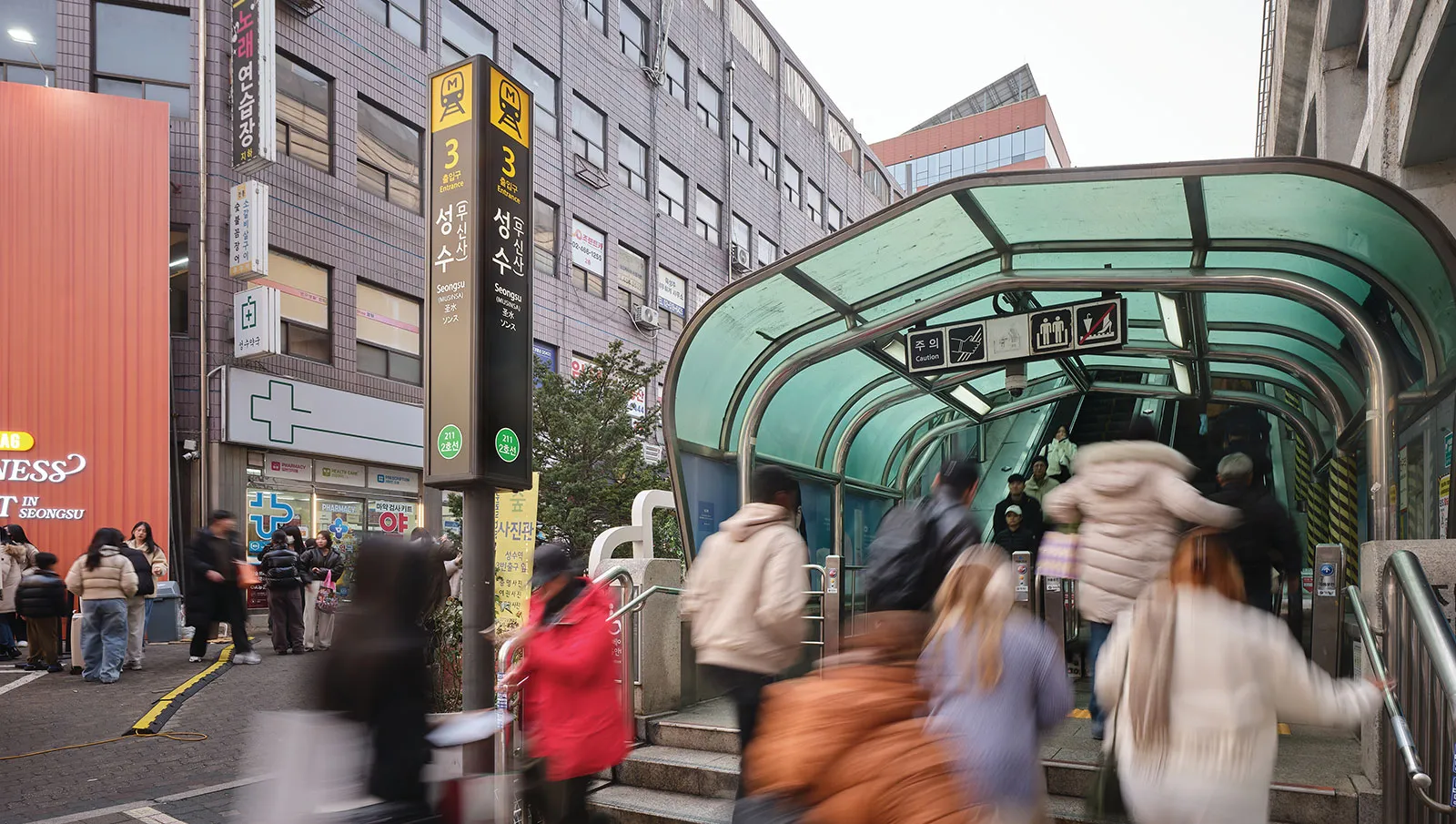 Yeonmujang-gil is divided into West and East sections. Exit 4 leads to the start of West Yeonmujang-gil, while Exit 3 takes visitors to the middle of the street. Opening a map app, one finds it takes less than five minutes to reach Yeonmujang-gil from Seongsu Station, and anticipation naturally quickens the pace.