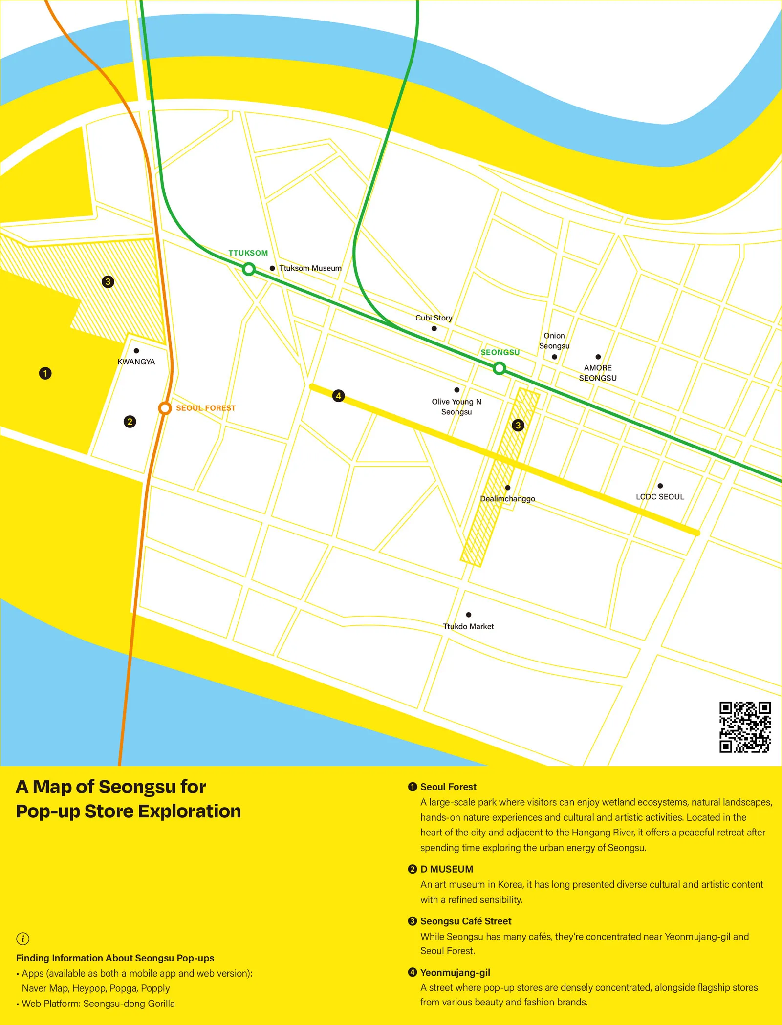 Visitors head to Seongsu, the epicenter of Korean-style pop-up stores where they can discover various brands and enjoy unique experiences for free. The destination is Yeonmujang-gil, where the highest concentration of pop-ups can be found.