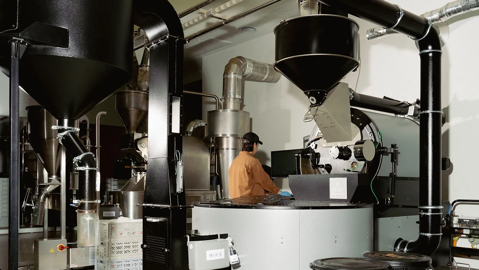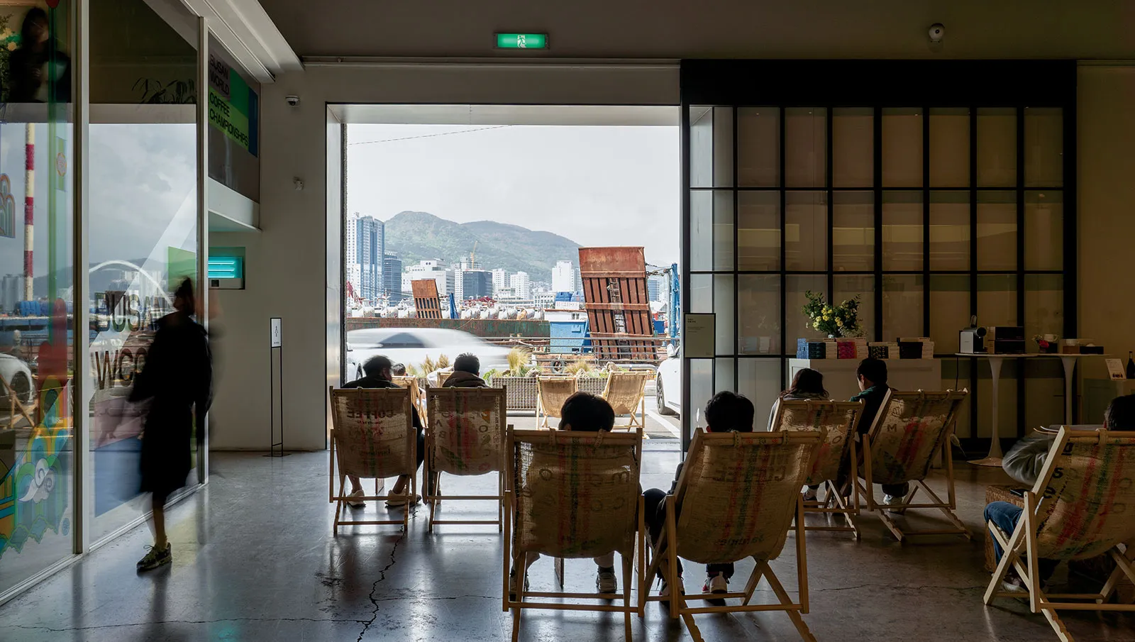 Starting from Busan Station and crossing the Busan Bridge, you can look down at the North Port Phase 1 redevelopment zone (the former Central Pier and Piers 1 through 4). Once defined by container logistics, the area is now being reimagined around passenger, cruise and urban regeneration functions. Old wharf warehouses have been converted for new uses, and Momos Coffee is one such space, redesigned as a complex that combines a roastery, coffee bar, educational facilities and experiential programs.