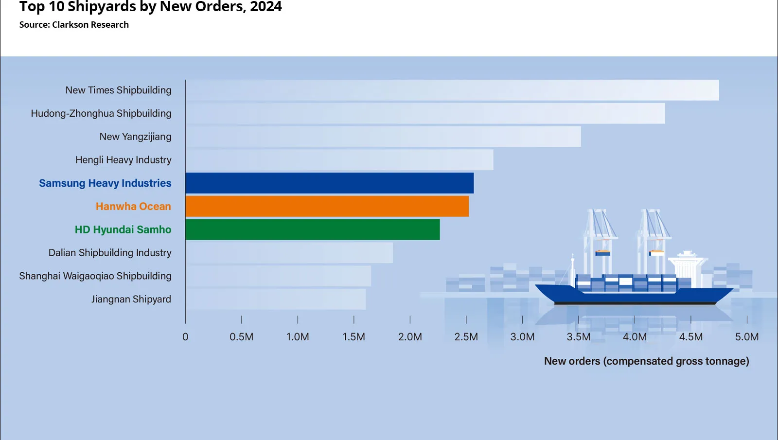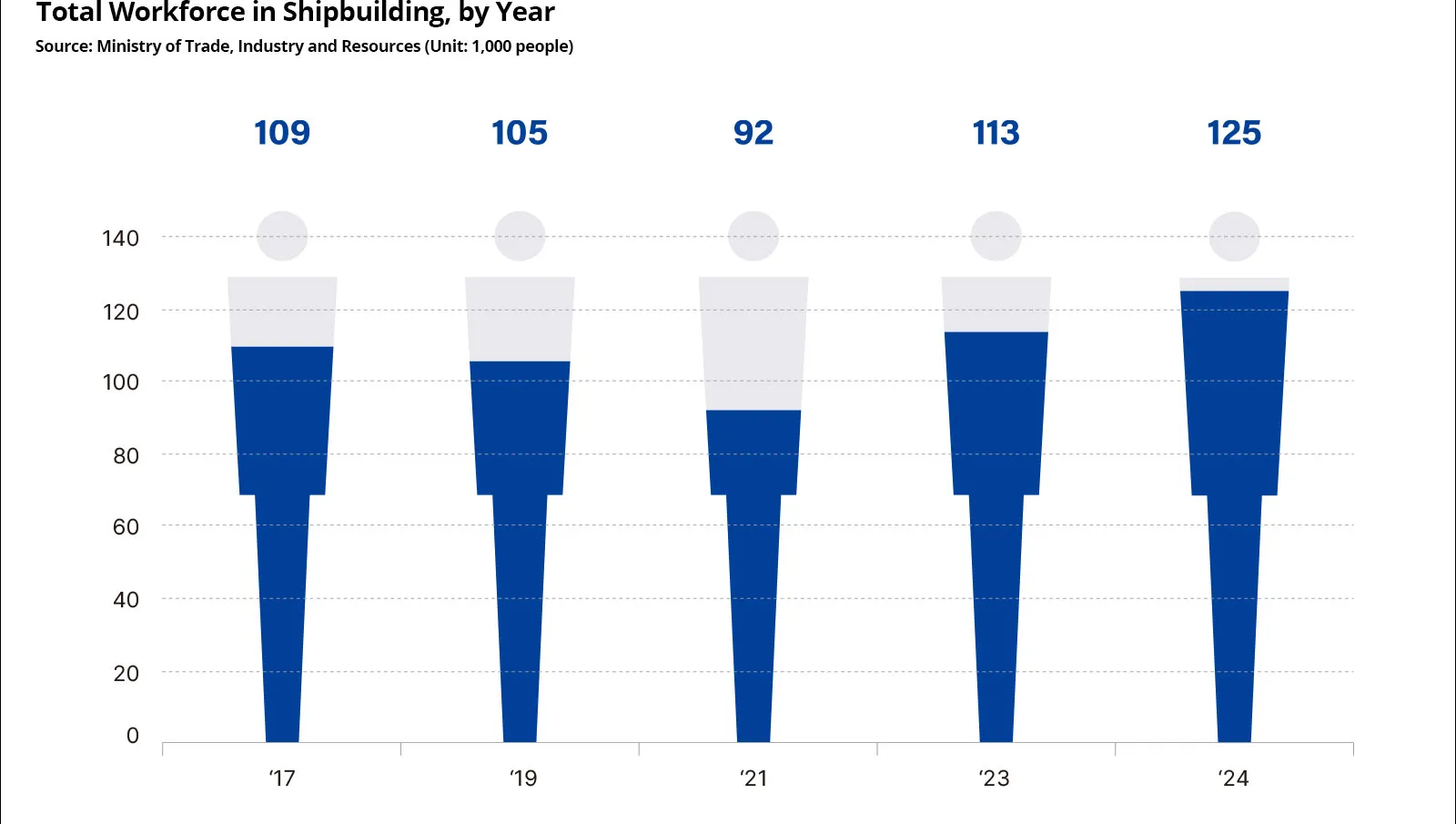 Then, in the 2010s, Korea’s shipbuilding industry hit a plateau. The primary causes were a drop in new vessel orders due to the global financial crisis and mounting pressure from the rapidly expanding shipbuilding capacity of a major competitor. From the 2020s onward, however, the industry began recovering across all key metrics and entered a new phase of growth. As of 2025, Korea’s ship completions reached 11.26 million CGT (Compensated Gross Tonnage—a standardized unit reflecting vessel weight, cargo capacity, construction complexity and labor input, used as a market share indicator)—the highest figure since the stagnation year of 2016.