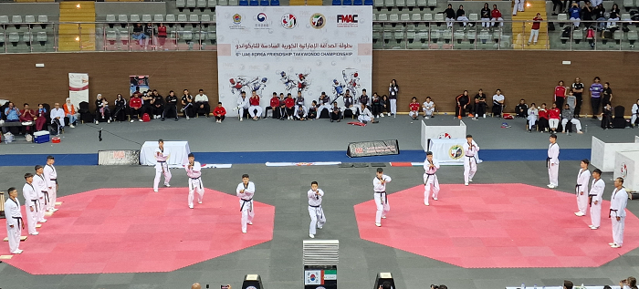 ‘제6회 한-UAE 우호 태권도 대회(The 6th UAE-KOREA Friendship Taekwondo Championships)’가 10월 22일 토요일 푸자이라 자이드 스포츠 종합경기장에서 개최되었다. 이번 대회는 유소년부를 제외한 남녀 각 부분 청소년(15-17세, 10체급), 성인(17세 이상, 8체급)등 체급별 겨루기 대회로 이루어졌다.