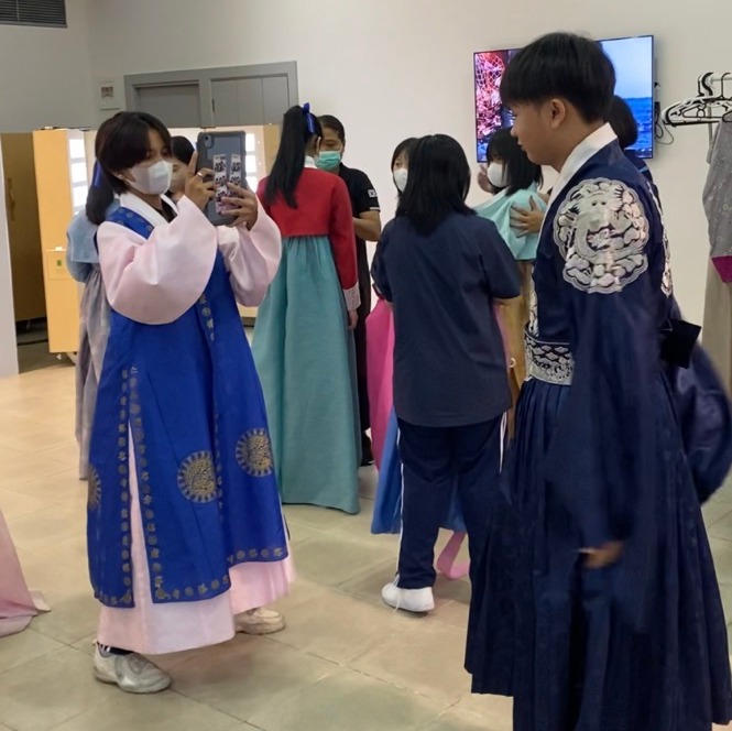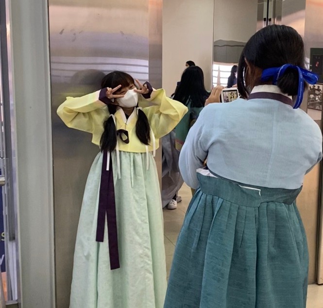 ▲ 한복을 입고 사진을 찍는 학생들 2