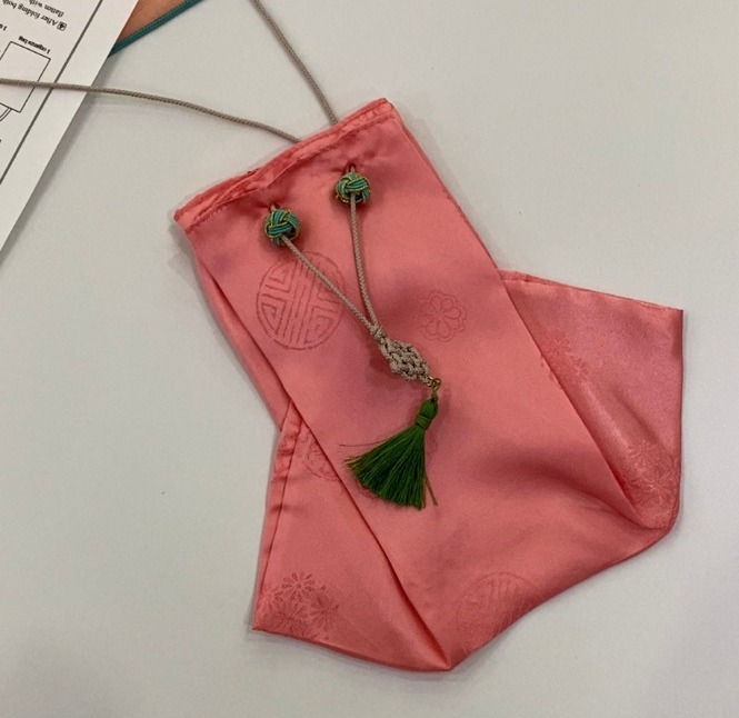 ▲ 직접 만들 귀주머니에 소지품을 넣고 사용해 보는 학생